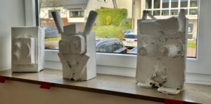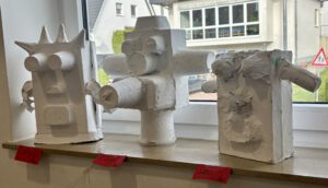 Im Kunstunterricht stellten die Klassen 3a und 3b nach dem Betrachten des „Schwachkopfes“ vom Künstler Max Ernst eigene Skulpturen her.